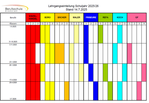 Wir sind bemüht die Einberufungswünsche der Ausbildungsbetriebe, soweit es die Schulorganisation zulässt zu berücksichtigen. Damit wir ihre Wünsche erfüllen können schicken Sie uns ein Mail an:
